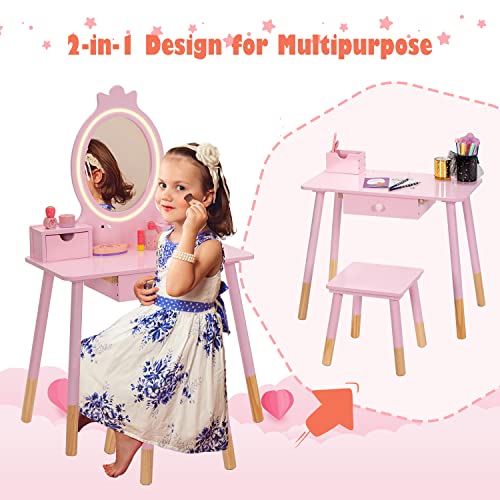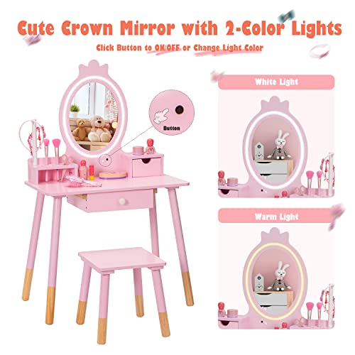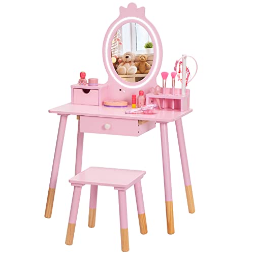 Specification: BRINJOY Children Self-importance Set with Lighted Mirror, Wood Make Up Magnificence Dressing Desk with Stool & Jewellery Rack & Storage Board, Youngsters Princess Self-importance Desk Faux Playset for Ladies