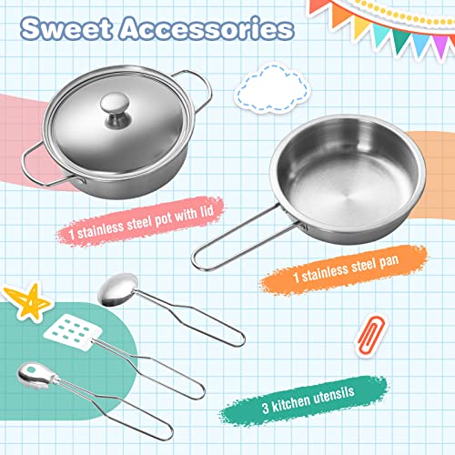 Full Equipment & Ample Storage Area – The faux chef play set comes with a full vary of cooking equipment, together with 3 kitchen utensils, 1 pot with lid, 1 pan. In the meantime, there are lots of storage cupboards and three hanging hooks to assist youngsters retailer the cookware so as.