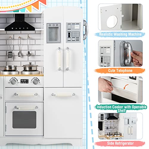 Specification: Costzon Children Nook Kitchen Playset, 11-in-1 Picket Play Kitchen Toy Set w/Life like Washing Machine, Microwave, Oven, Range, Fridge, Water Dispenser, Vary Hood, Phone, Utensils, Sink