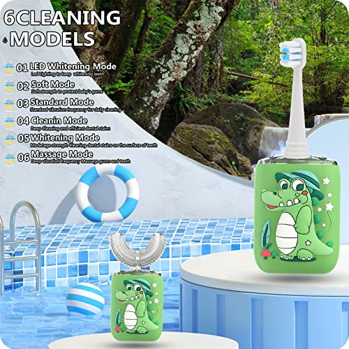 Specification: TSUNDERE L Children Electrical Toothbrushes, U Formed Toothbrush Children w/ 4 Brush Heads, Cup & Storage Case, 6 Clear Modes, 60s Sensible Reminder, IPX7 Waterproof Ultrasonic Toddler Toothbrush Age 2-7(Inexperienced)